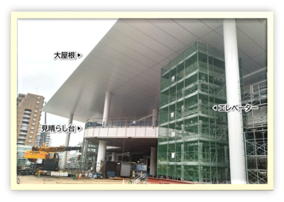 万代広場【ペデストリアンデッキ】中央大屋根が完成しました(令和6年10月末時点)